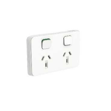Clipsal Iconic - Twin Switch Socket Outlet, Horizontal Mount, 250V, 10A, 3025-VW, Vivid White